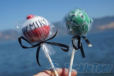 As we reached into the cooler we found the sandwiches that Daniel had prepared for us, as well as a nice bonus, cake-pops. These were no ordinary cake-pops, and they were shaped as either bobbers with “Damiki” written over them or smiling largemouth bass. Sweet!