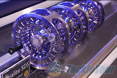 Ultralite SDS Fly Reel: Ultralite SDS (Sealed Drag System) reels boast robust carbon drag systems with all drag adjustments available within a single 360-degree turn. Each model is fully machined from 6061 polished and anodized aluminum bar stock and also features a quick release spool, easy right to left conversion, and a neoprene pouch. Appropriate for 8–14 weight lines, three models will be offered at a price of about $450.00 to $495.00.