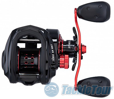 Red highlights remind anglers that this reel burns baits when retrieved