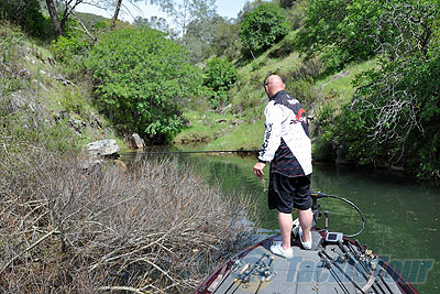 Justin Reglin work the coves. Jeff is the 2011 Everstart Lake Shasta Champio and