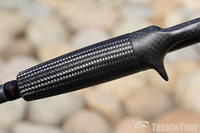 A closer look at the carbon fiber grips that have become a signature of many of Edge's rods. I like these grips for comfort and durability