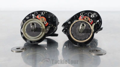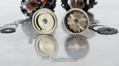 Abu Garcia has upgraded the main gear in this reel to brass (right side).