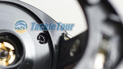 Access to the reel's spool is through the non-handle sideplate, held in place by this spring loaded screw.