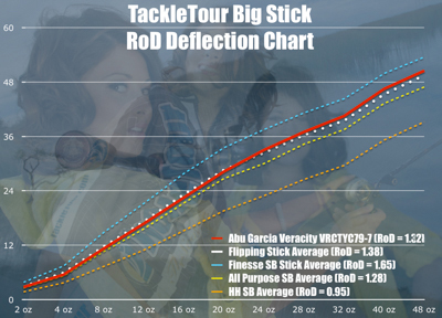 Fig 1 : The chart above illustrates the deflection characteristics of our Abu Garcia Veracity VRCTYC79-7 against the historical averages of similarly powered rods we've tested over the past twenty years