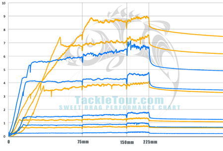 Knowing the maximum a reel can go is nice, but even in cases where finesse fishing is not involved, maximum drag performance is not always the priority. We're now able to analyze start up drag, sustained drag, and even chart a reel's performance at different settings noting how the curve spikes and drops when pressure changes or even stays the same. We then graph this information in our new, Sweet Drag Performance Charts.