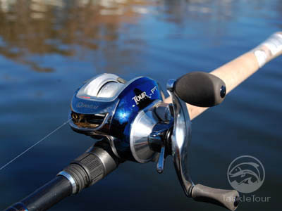 he launches ... Grant field testing Cal's Megabass F7-74DG and Shimano Antares DC7 combo with one of his own Shellcrackers tied to the end of the line.