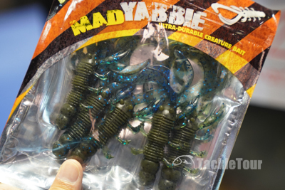 Mad Yabbie: New to us is the company's Mad Yabbie creature bait. We're familiar with their popular Standing Yabbie bait, but James Matsuoka tells us this bait has been in the company's catalog for a few years. It was refined sometime last year and is now ready to ship. The current version of the bait is five inches long, weighs 3/8oz by itself, and features two big swimming claws on a narrow body adorned with appendages up and down its length. The manufacturer recommends a 4/5 or 5/0 hook for this bait. There are currently 10 colors and it sells for $4.99 per package.