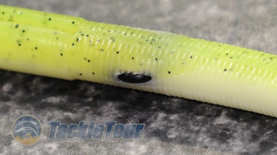Well now, Big Bite Baits has their own, out of the package interpretation of this modification. They've created the Wacky Stick - a stick bait featuring an o-ring pre-installed INSIDE the bait! It's so obvious, yet no one else has done it. It also looks very fragile but testing it out on the floor of ICAST, the rings actually stay in there really well. It takes a lot to pull one off the ring. For now, they are made in 5 inch sizes only but will be available in 8 different colors and be sold in packs of 7 for right around $4.49.