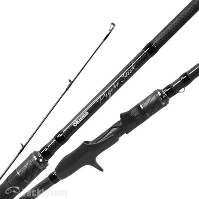 Okuma's new high end rods, the Psycho Stick Series, are built on 46-ton low resin carbon blanks with Okuma's Ultimate Matrix Reinforcement (UMR) Technology that gives the rods a 300% increase in lifting capability and the ability to bend 360 degrees