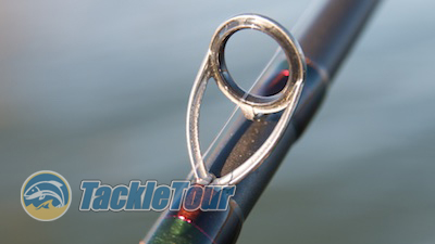 The big deal with this stick, other than the mysterious titanium fiber and high grade graphite infused blank, is of course the use of the brand new Fuji Torzite guides marketed as an even harder, more durable, and lighter overall solution than their coveted titanium framed SiCs. Looking at the guides, you can see the inserts themselves are more thin which in and of itself probably counts for a lot of the weight savings on the guideset because there's less material.