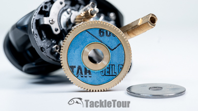 Nestled within the brass gear is a single composite drag washer
