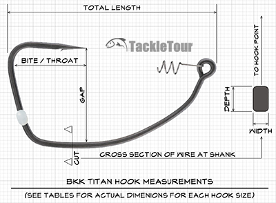 BKK Titan Rider Hook Measurements by Size