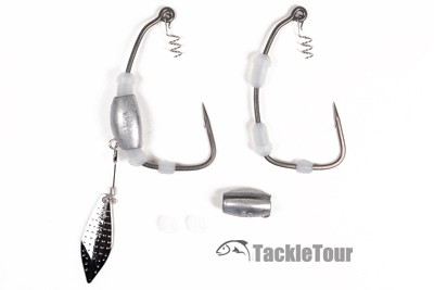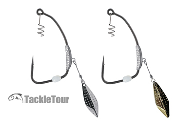From left to right : BKK's Titan Driver, Gamakatsu's Spring Lock Spinner SB Hook, Owner's Flashy Swimmer, Zappu's Blading Pile Driver