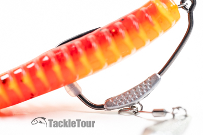 This egg shaped piece of silicone around the hook near the point helps keep the back of your baits in place