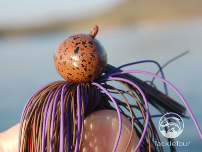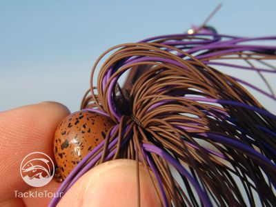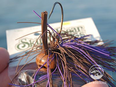The Skirt: The Elite Football Jig from Skinny Bear is marketed as featuring a skirt composed of three different materials: Living Rubber, fine round rubber, and silicone. The skirts are supposed to be hand tied with double wraps of wire. Viewed on their website, it is clear, many of their skirt color combinations are indeed made up of these three materials, but the one color we selected for testing, brown and purple, only features two of the three materials - the silicone component is missing from this color combination. What's more, ours were hand tied with black thread, not wire. Not a huge deal either way, but just a note there will be some inconsistencies depending on the color you choose.