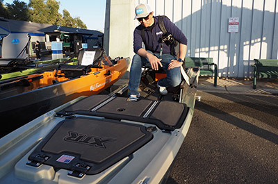 Kayak City was at the show and showed the Bonefide XTR130 that blurs the line between a bass boat and a kayak. Troy of Kayak City chows us the giant deck
