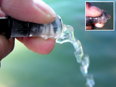 system uses a bite-activated valve. When you apply pressure to the tip water