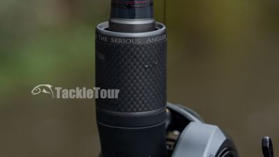 The motto, "Meticulously Crafted For The Serious Angler" is stamped across the accent ring at the top of the reel seat hood
