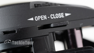 The non-handle sideplate is secured via this switch on the underside of the reel