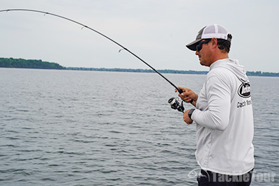 Bassmaster Elite Series Angler Justin Atkins fighting a Smallmouth with the new Revo SX