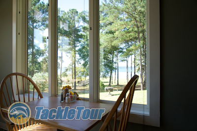 The dining room has a nice view of the lake.