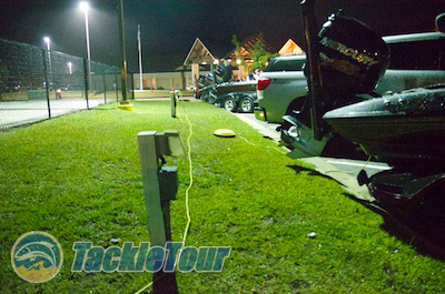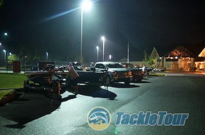 The pros all parked their boats in the lot overnight.