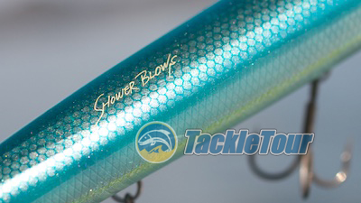 Evergreen International's Shower Blows, or SB for short, topwater plug is available in two sizes, 125mm and 105mm. Our discussion here is surrounding the larger, 125mm size which translates to just under 5" in the imperial units. The baits themselves all feature traditional, high quality finishes with very good detailing and choice in hardware. These baits are very well built as we've come to expect from this manufacturer.