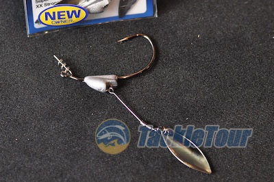 It comes equipped with Owner's Centering-Pin Spring system and a Willow Leaf blade extending out from the bottom of the weighted head. The Flashy Swimmer can be used as a search bait in lieu of a crank or spinnerbait giving you better weed protection than either and an overall different look for the fish.