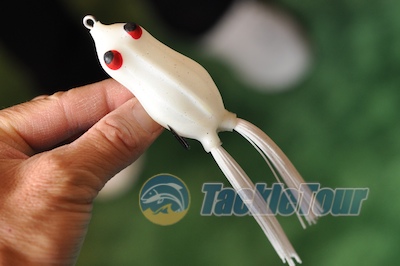 Another difference is Ish’s Phat Frog’s legs are closer together mitigating against the propensity of rubber nubs extending from the base of the frog’s body to hold the rubber strands to foul the bait by being forced up and around the hook during a violent fish strike.