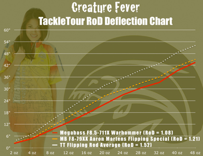 F8.5-711X Warhammer: With the F8.5-711X Warhammer, we enter into an area very few JDM rods have ventured. For Megabass, the selection of rods over an F7 power is very limited. The Warhammer is stepping into territory formerly occupied by the F10-76XBJ Super Red Demon and still occupied by the F8-79XX Aaron Martens Flipping Special to name a couple. This is a beast of a flipping/punching stick yet weighs in at a respectable 5.9 ounces and a very decent balancing point of nine and a half inches (9.5") up from the midline of the reel seat.