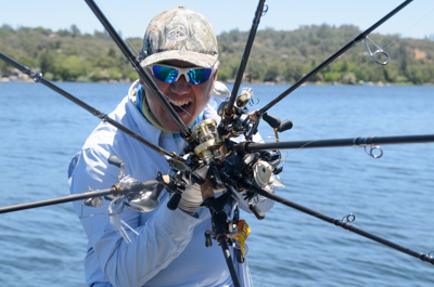 Once the combo was rigged and ready to go, I laid it down on the boat deck for a second to put my tackle boxes away. When I glanced back over at the combo sitting on the deck, I took a pause. The gold anodized finish of the Conquest really picked up the same colored highlights in the Warhammer's handle assembly making a stunning combo. I commented to Zander and he agreed on the perfect match. On this day, the Warhammer won our award for a tackle enthusiast special moment.