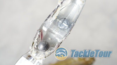 On each cast, the internal tungsten ball shoots to the back of the bait.