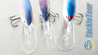 From left to right, a comparison of diving bills : Lucky Craft D-20, Megabass Deep Six, Norman DD22.