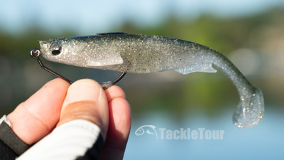 Impressions: I am talking, of course, of the Spark Shad. Available in three sizes, three, four, and five inch, this bait is ideal for umbrella rigs hence the its popularity for this application. However, those in the know realize the bait is capable of so much more. It resembles your ubiquitous hand poured paddletail bait with its flat top. In fact, the body of the bait is a very pliable soft plastic reminiscent of your softest hand pours. However, the Spark Shad distinguishes itself with a belly designed on inspiration from the keel of a boat, and articulated exterior fins engineered to keep the bait stable during retrieve.