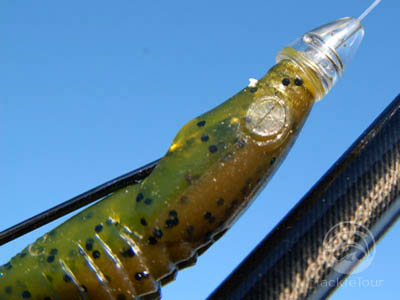 A closeup look at the Skinny Dipper rigged with the RI Screwed Up Bullet