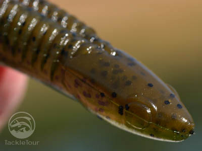 They're subtle, but you can see the eyes on this soft plastic bait.