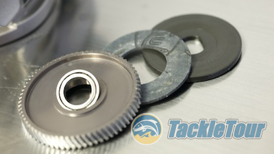 One of the Shift's 13 bearings sits on the main gear. The drag consists of a single washer.